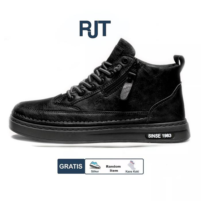 THE ROCK SEPATU BOOTS PRIA KASUAL SHOES SEPATU KERJA SEPATU BOOTS KULIT BLACK SNEAKER HITAM 40