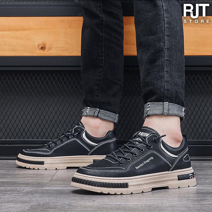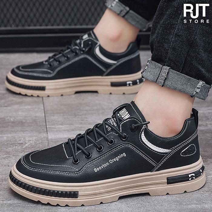 ROMEO SEPATU KULIT SNEAKERS PRIA SEPATU KASUAL BLACK CASUAL OLAHRAGA SHOES RUNNING BLACK 43