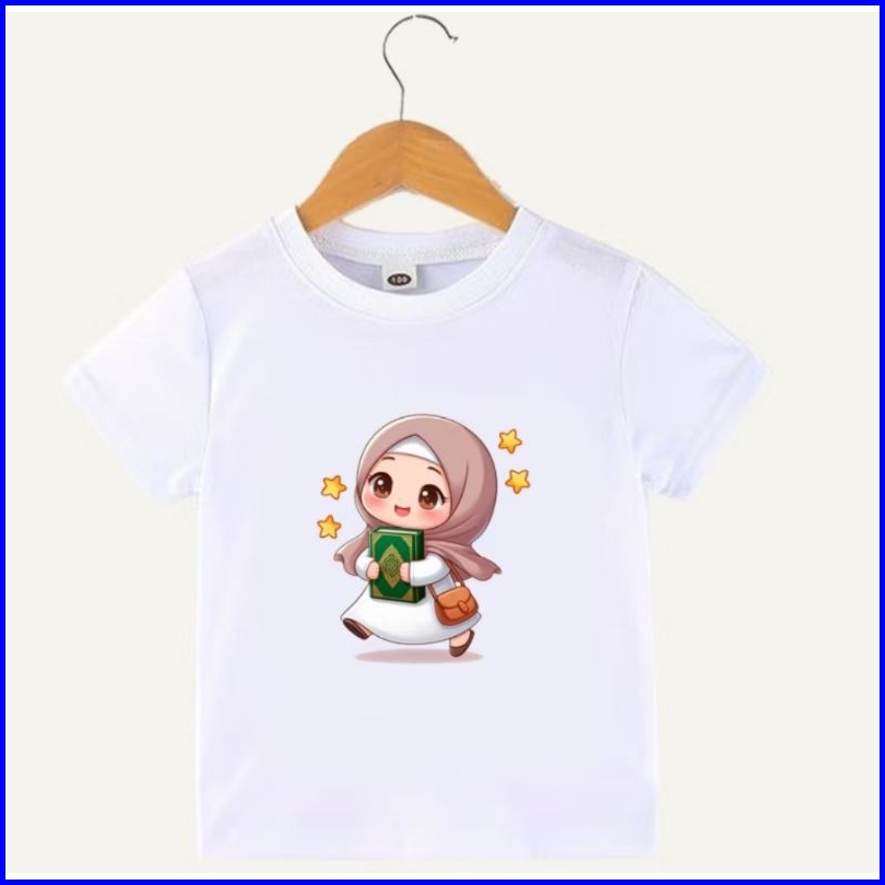Baju Kaos Atasan Motif Kartun Muslim Pakaian Anak Unisex Untuk Umur 2-10 Tahun