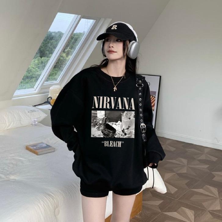 A0854 Forteid Sweater Retro Hitam | Sweater Hitam Panjang Muda Basic Leher Bulat Sweater Oversized Round Neck Gaya Korea Untuk Wanita Leher Bulat Gadis Sweater Oversized Cantik