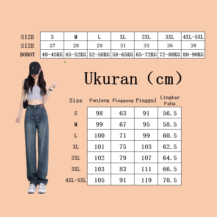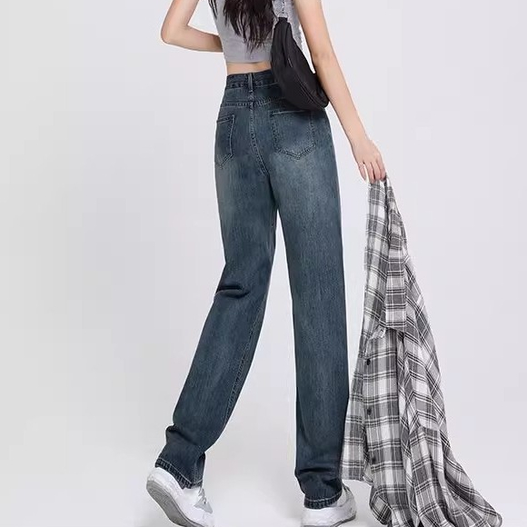 KATERMEN Jeans Ukuran Besar-Jeans biru-Jeans wanita-Jeans longgar kaki lebar-Jeans pinggang tinggi