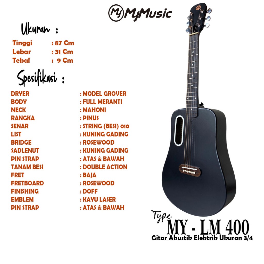 Gitar Akustik Elektrik Seri LM 400 Ukuran 3/4 Free Packing Kayu