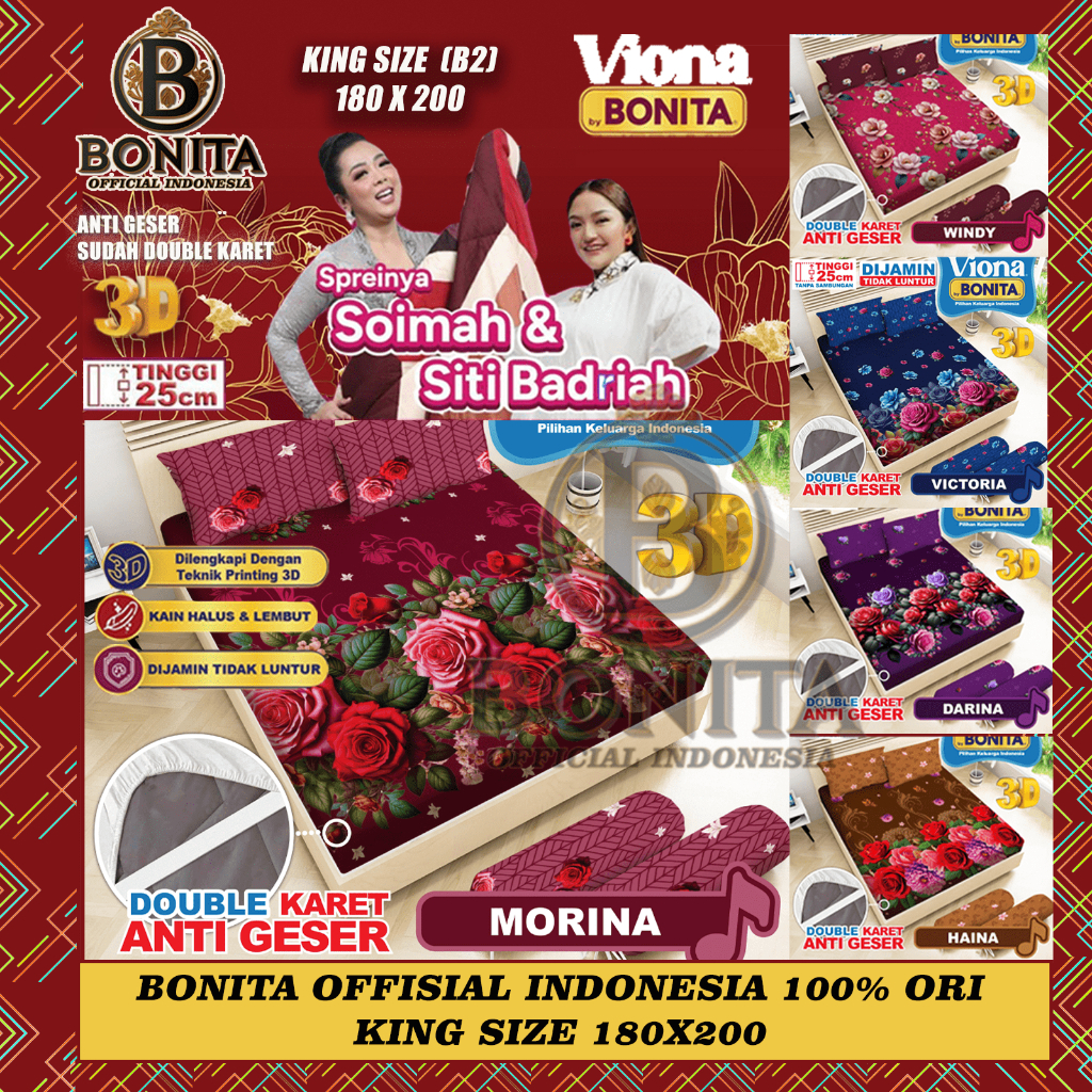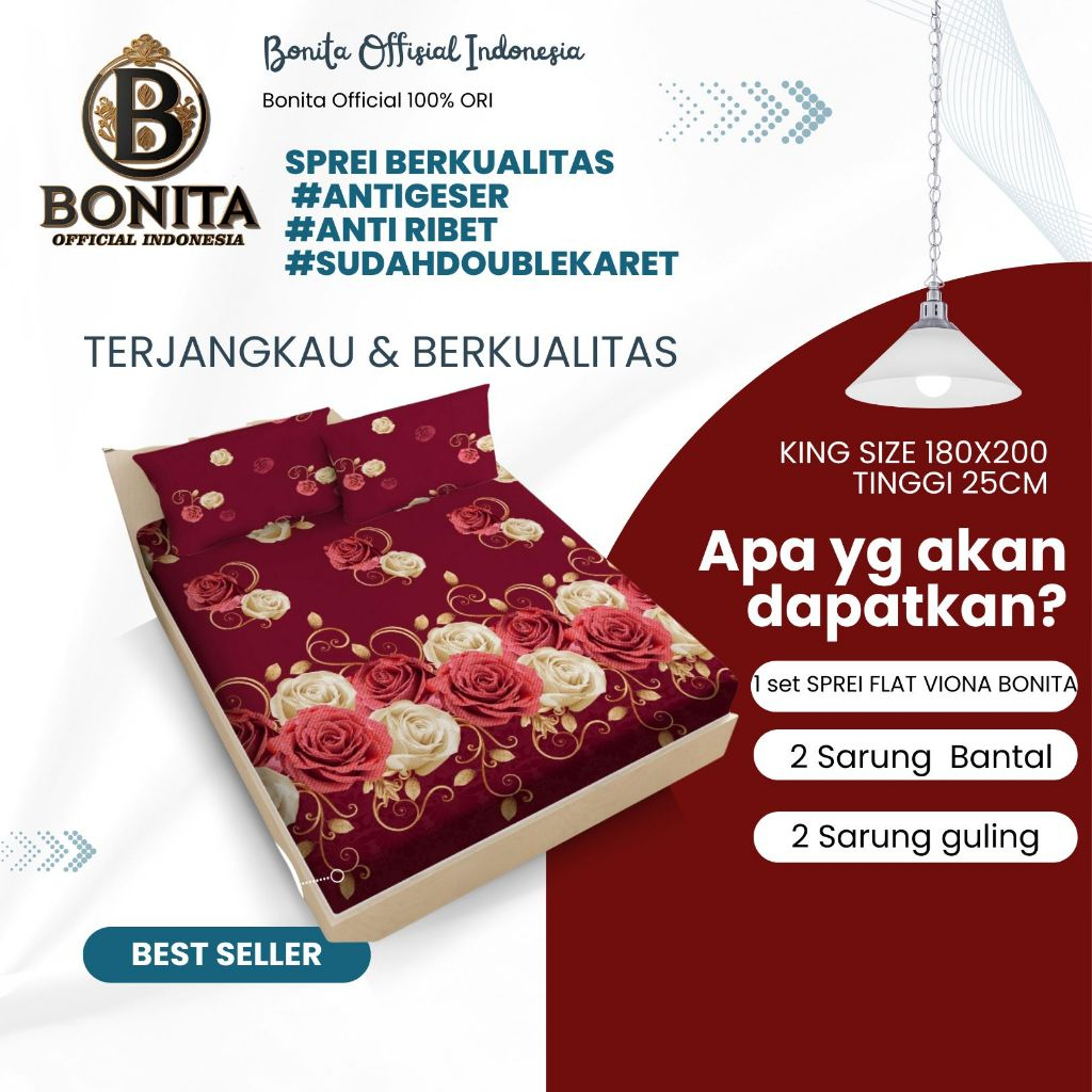 (TERMURAH ) SPREI BONITA VIONA 180X200 KING SIZE NO.1 T 25 HARGA PABRIK 100 PERSEN ORIGINAL OFFICIAL