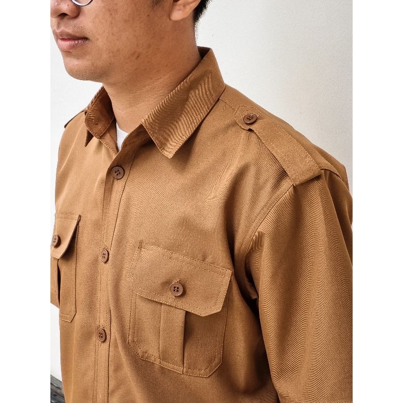 [010] Seragam PNS Pemda Pria PDH Terbaru Warna Khaki Tua| Bahan Semi Wool Adem | Seragam Guru PNS pegawai pria warna khaki tua biru dongker putih