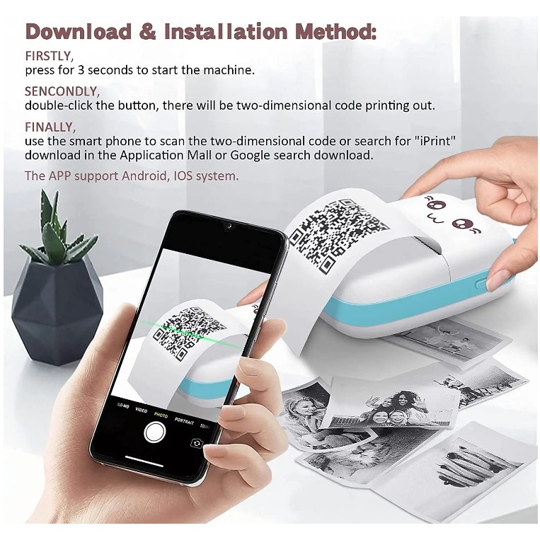 SMARTCOM Mini Printer Thermal Bluetooth 58mm Cute CAT Cetak Gambar Foto Memo Resi Memo