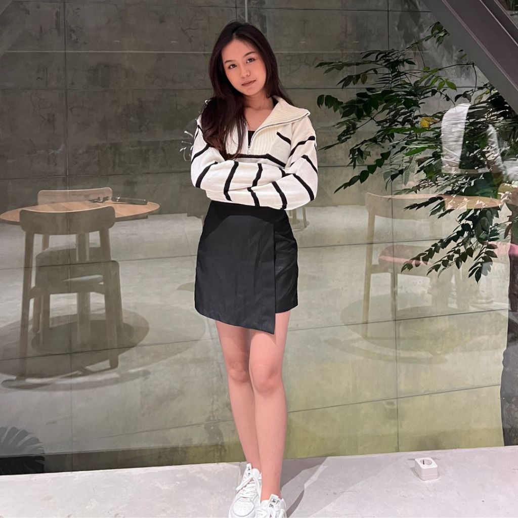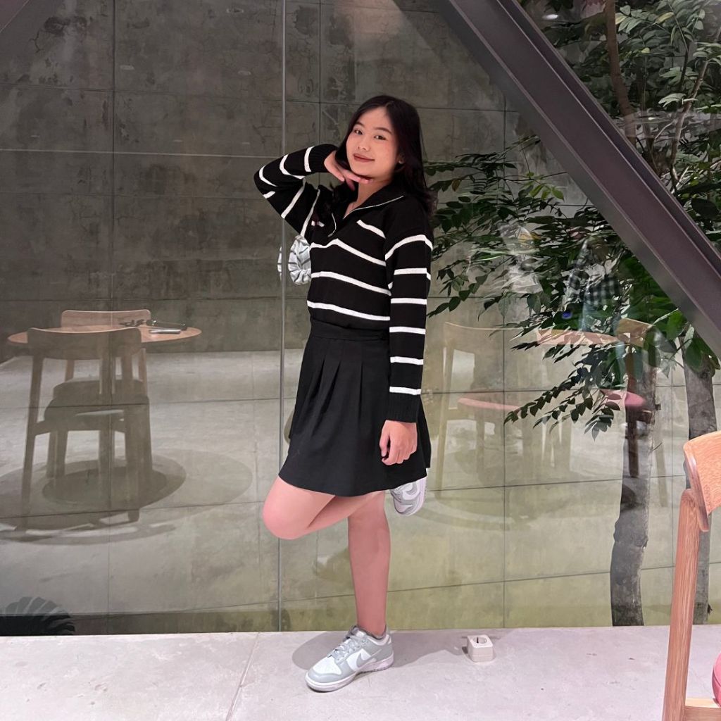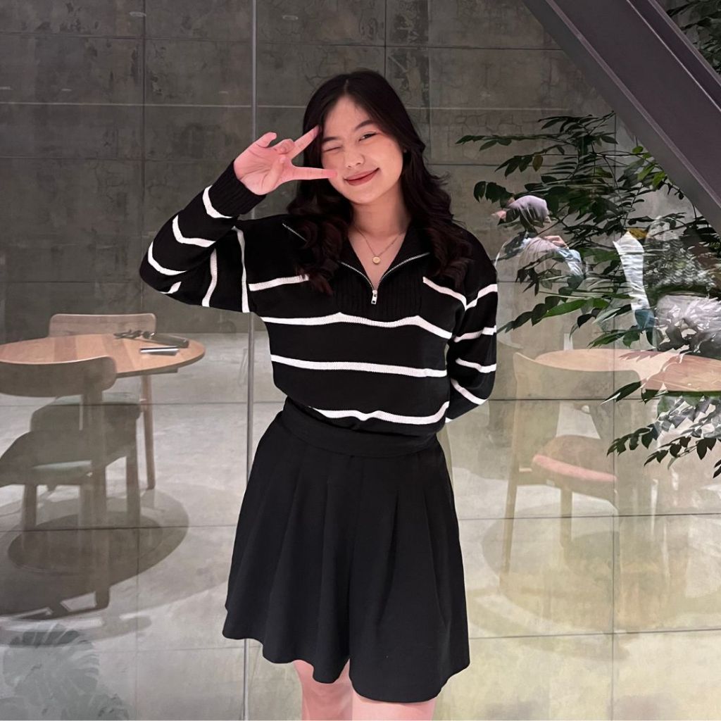 NADIRA - Stripe Zipper Top Knit - Sweater Rajut Stripe Wanita Kerah Seleting Korean