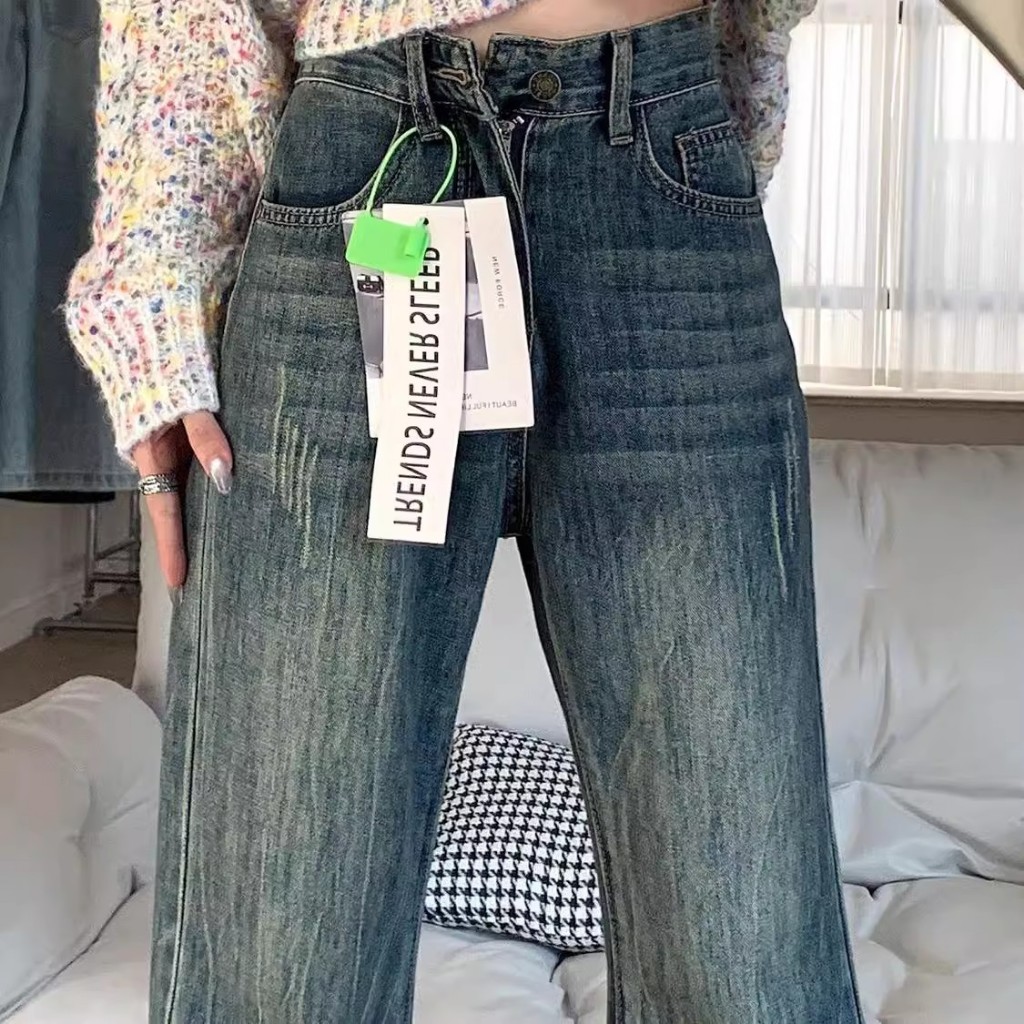 Celana Jeans Pria Panjang Snow Grey - Celana Jeans Korea Style Original Loose Straight - Celana Jeans Oversize