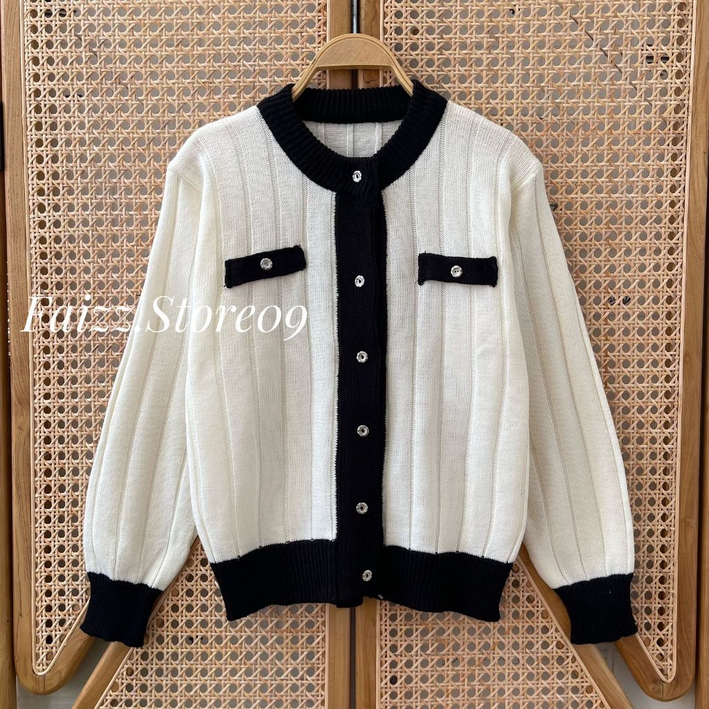Amisha Cardigan Rajut Stripe Kancing Salur Wanita Lengan Panjang