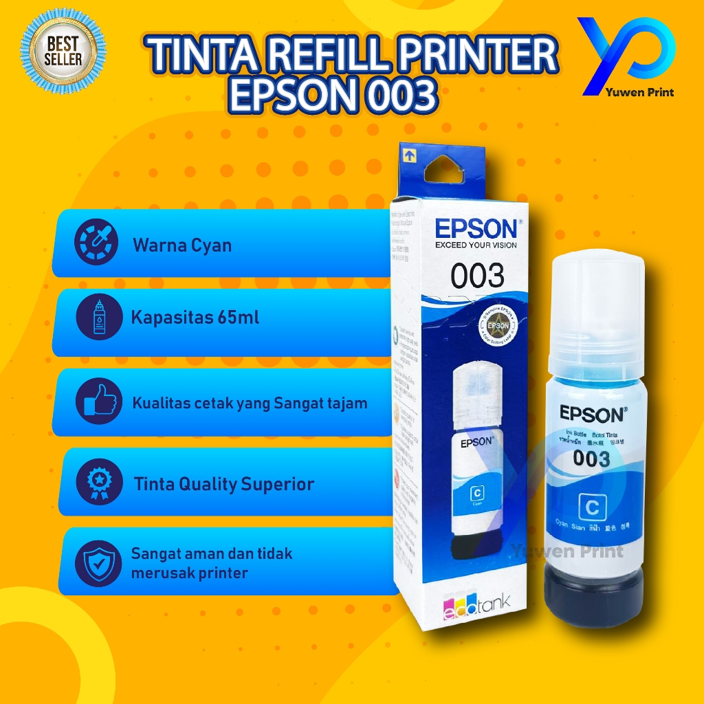 1 Set 4 Warna Tinta Epson 003 Refill Untuk Printer L1110 L3100 L3110 L3150 L3510 L5190 L3120 Cetak Tajam