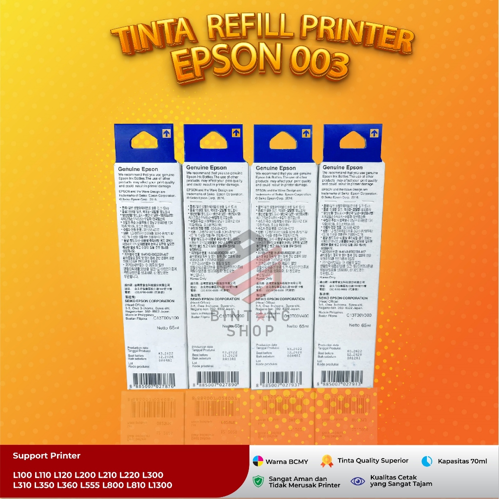 Tinta Epson 003 Tipe Printer L3210 L1110 L3101 L3110 L3150 L5190 L3100 L3101