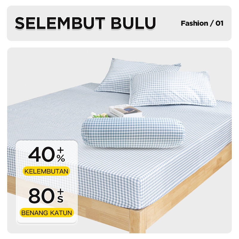ORANGE Sprei Set READY STOCK Tinggi Sprei 25cm 120x200 160x200 180X200 sarung Set motif kotak perlengkapan kamar tidur aesthetic perlengkapan kamar tidur aesthetic