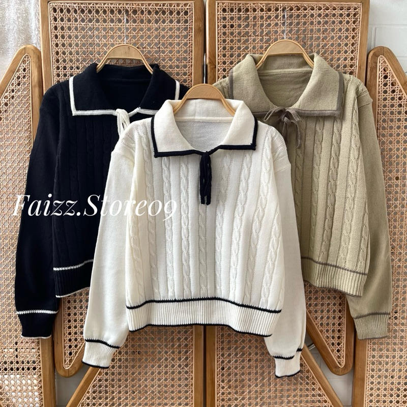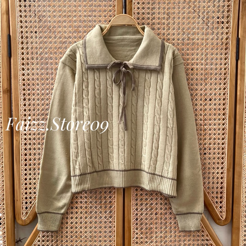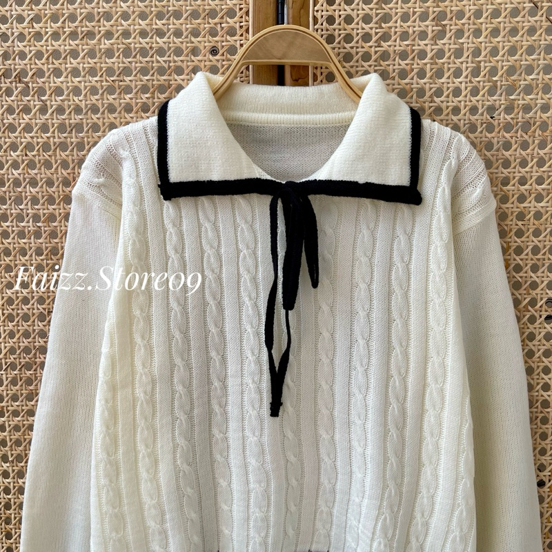 Dalia Sweater Atasan Rajut Wanita Berkerah Polo Pita Motif Cable import Premium Lengan panjang Korean Style