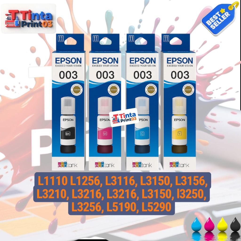 1SET TINTA EPSON 003 ORIGINAL UNTUK TIPE PRINTER EPSON SERIES L1110 L1210 L1216 L1250 L3110 L3150 L3210 L3216 L3250 L5190 L5290