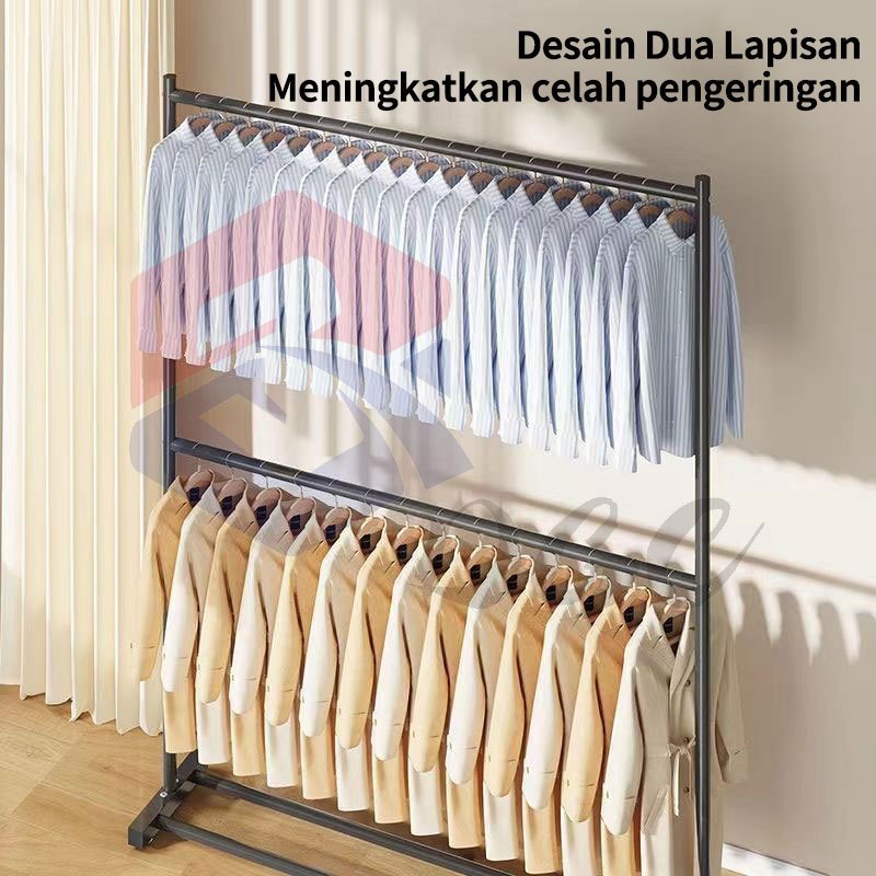 DGC 150X200CM Rak Gantungan Baju 2 Susun Gantungan Baju Besi Gantungan Baju Berdiri Rak Baju Gantung