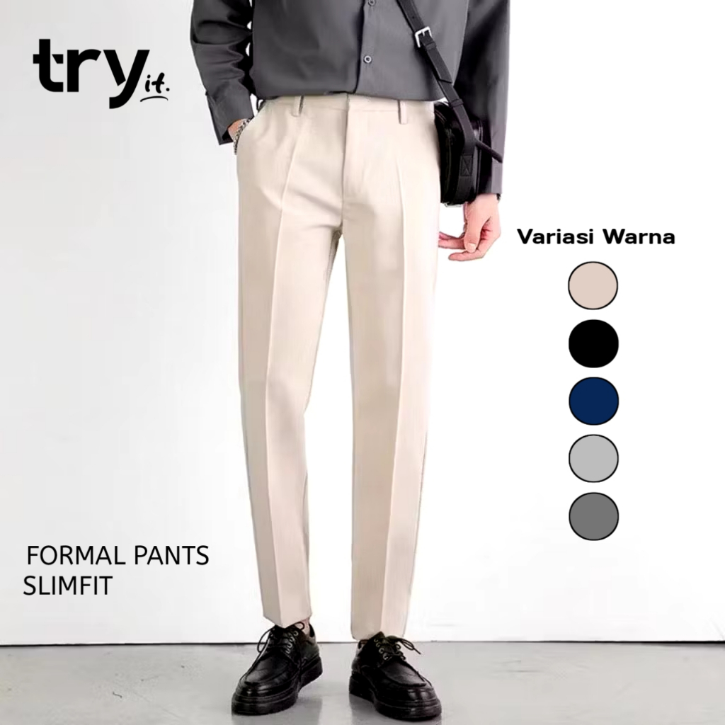 Celana Kantor Formal Pria Slimfit Bahan Dasar Kain Woll-Celana Ankle Pants-Celana Panjang Pria Size 27-38