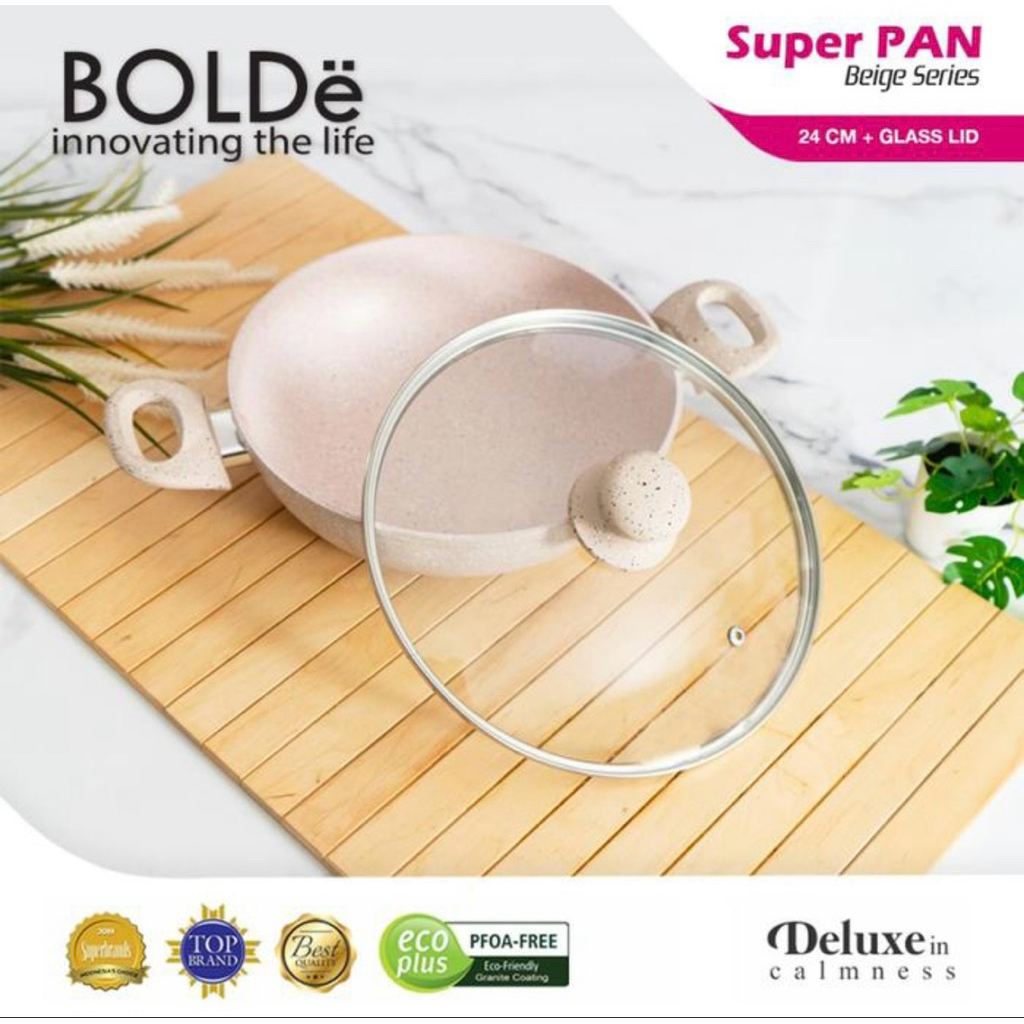 BOLDe Super Pan 2 Ear Wok (Wajan) 24cm + Lid Beige