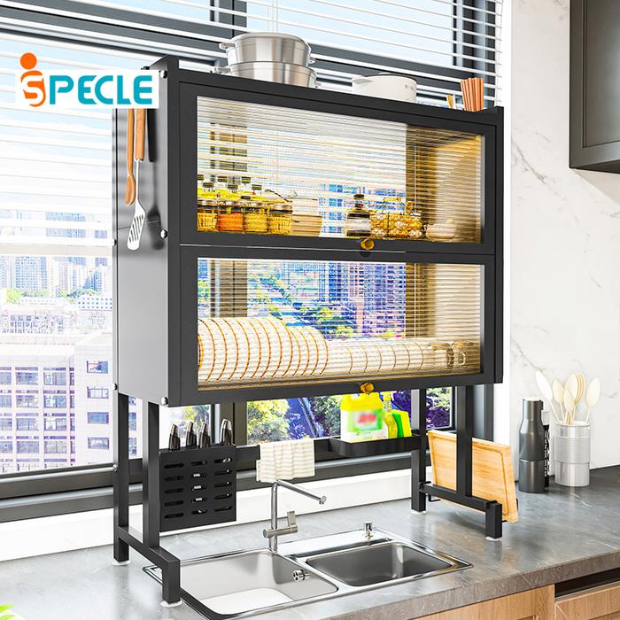 Rak Piring/Teko/Ketel iSpecle Rak Piring Logam Lapisan Ganda Rak Atas Wastafel Anti Debu Dengan