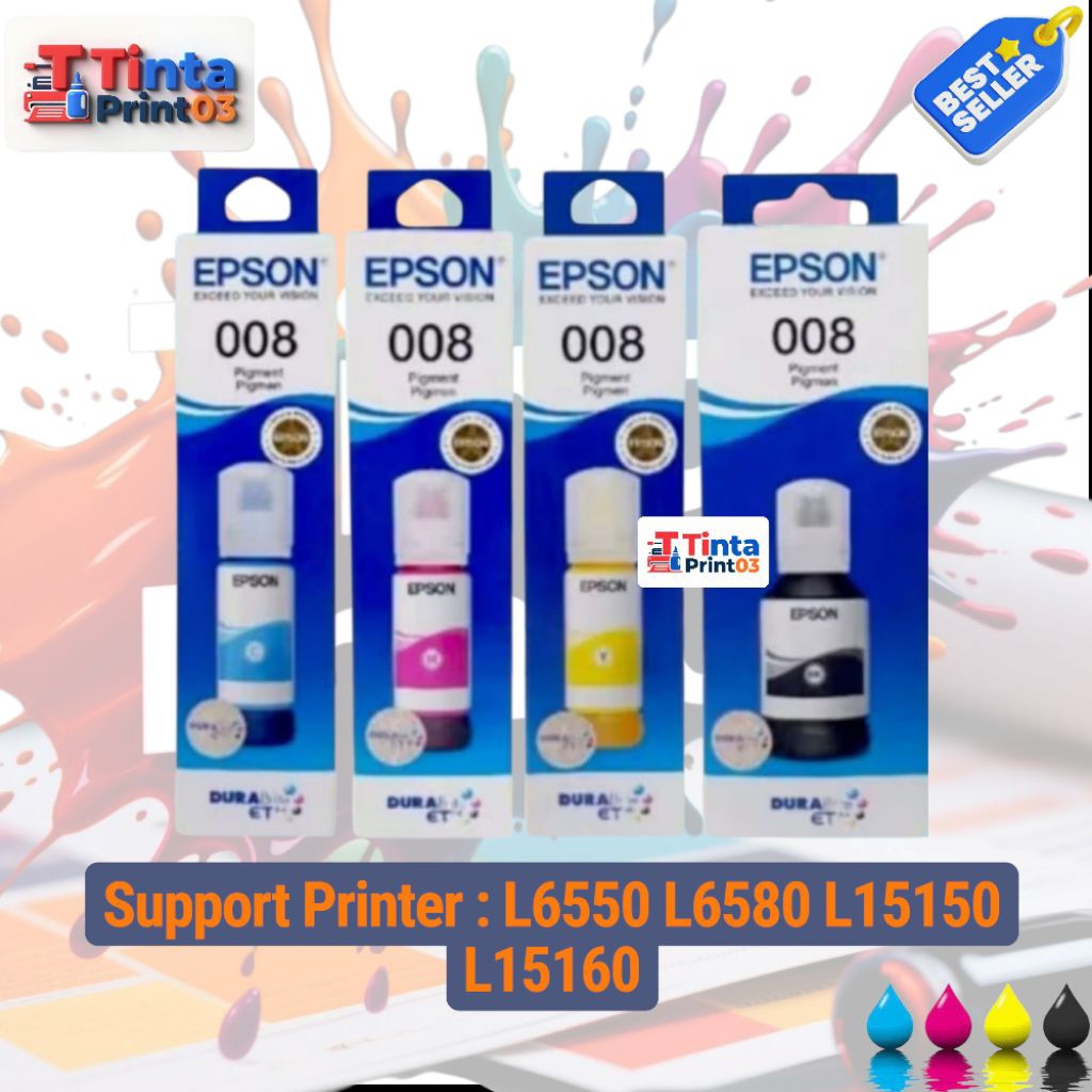 1SET TINTA EPSON 008 0RIGINAL UNTUK TIPE PRINTER EPSON SERIES L6550 L6580 L15150 L15160