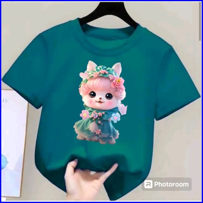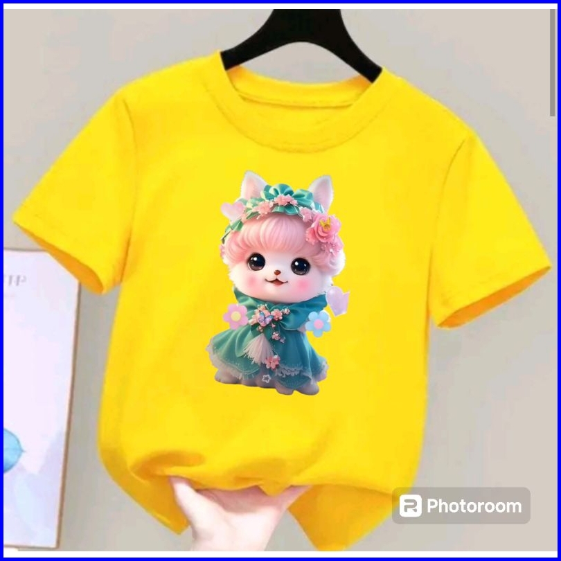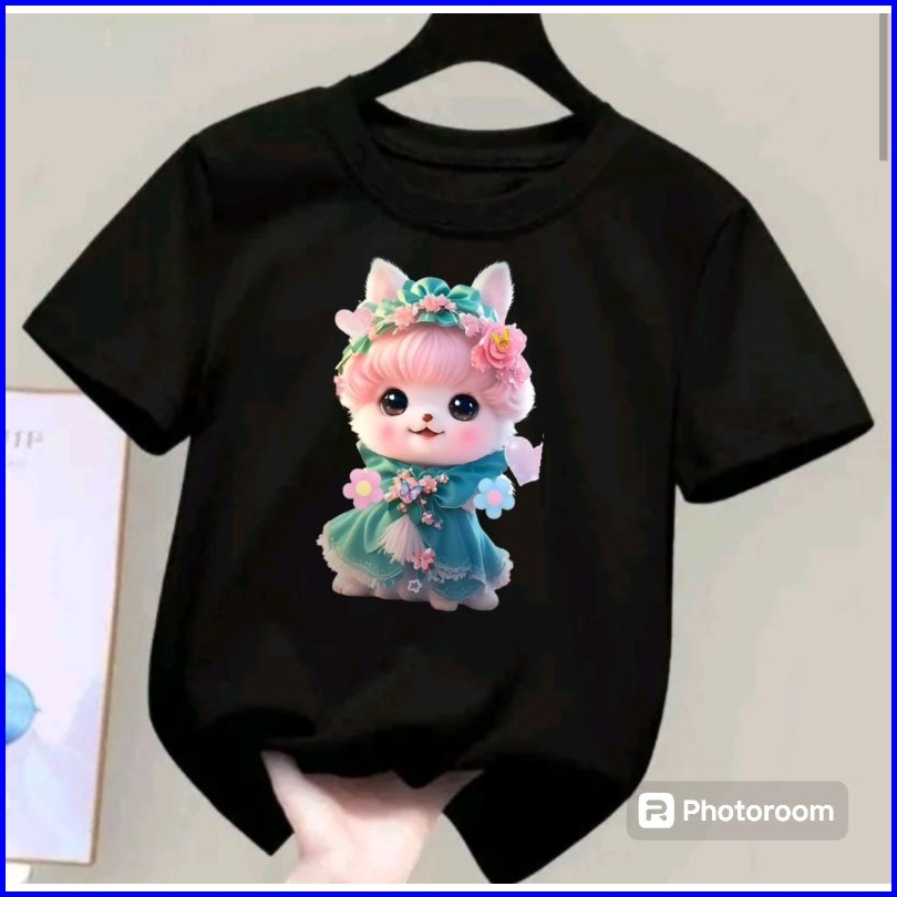 Kaos Anak Cewek Motif Kucing Cantik Usia 2-10 Tahun Bisa Vod