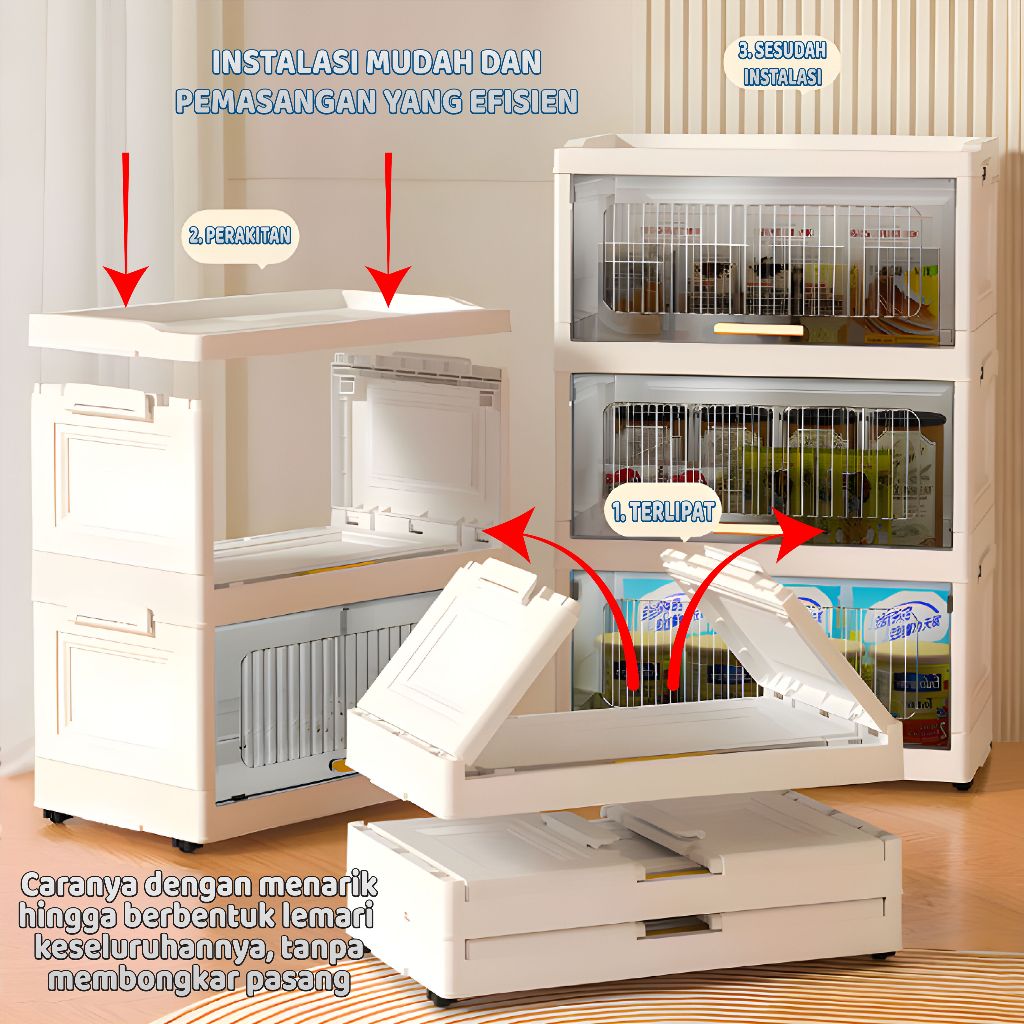 Lostars T3 (Tidak Perlu Instalasi) Rak Kabinet Susun Lipat/Rak Buku Serbaguna ada Roda/Lemari Plastik Lipat Susun