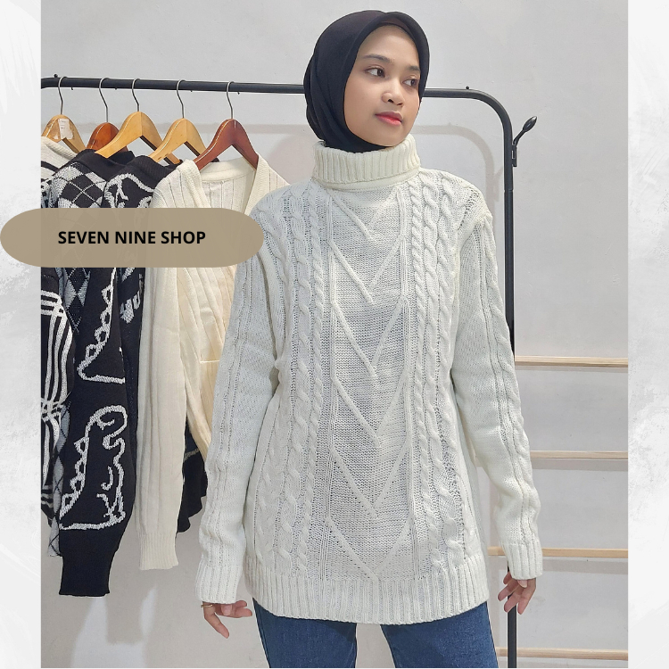 Turtleneck Sweater Rajut Dewasa Oversize Motif Cable/sweater rajut wanita/sweater leher tinggi