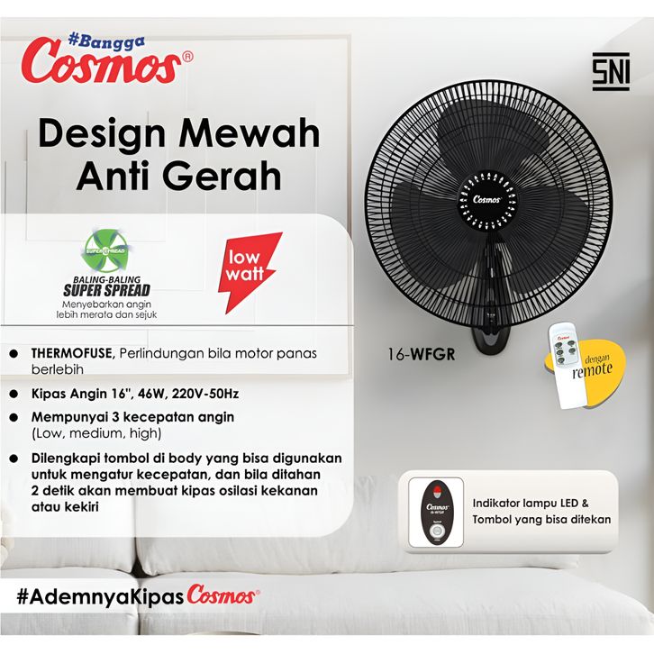 KIPAS ANGIN DINDING COSMOS / WALL FAN + REMOTE 16 WFGR ( 16 INCH ) ORIGINAL GARANSI RESMI