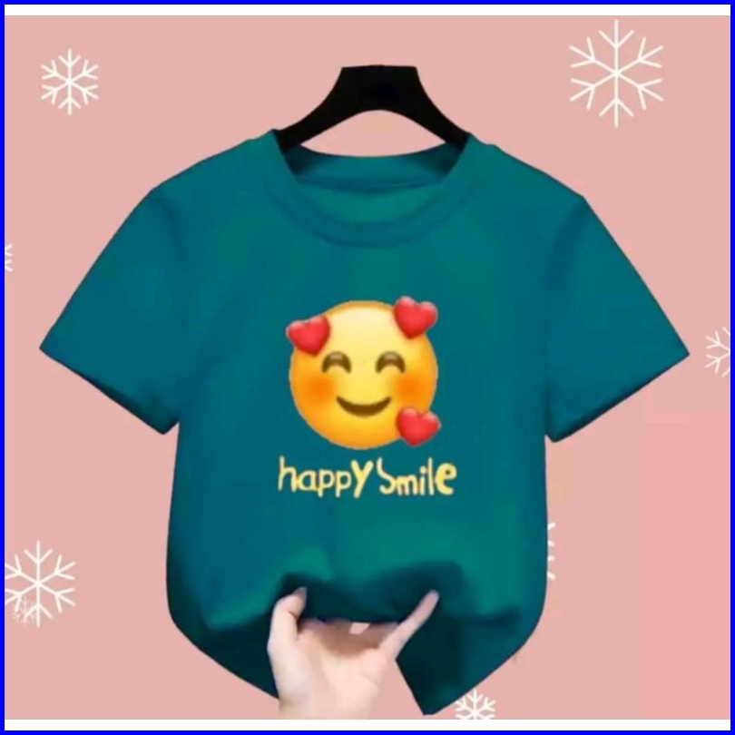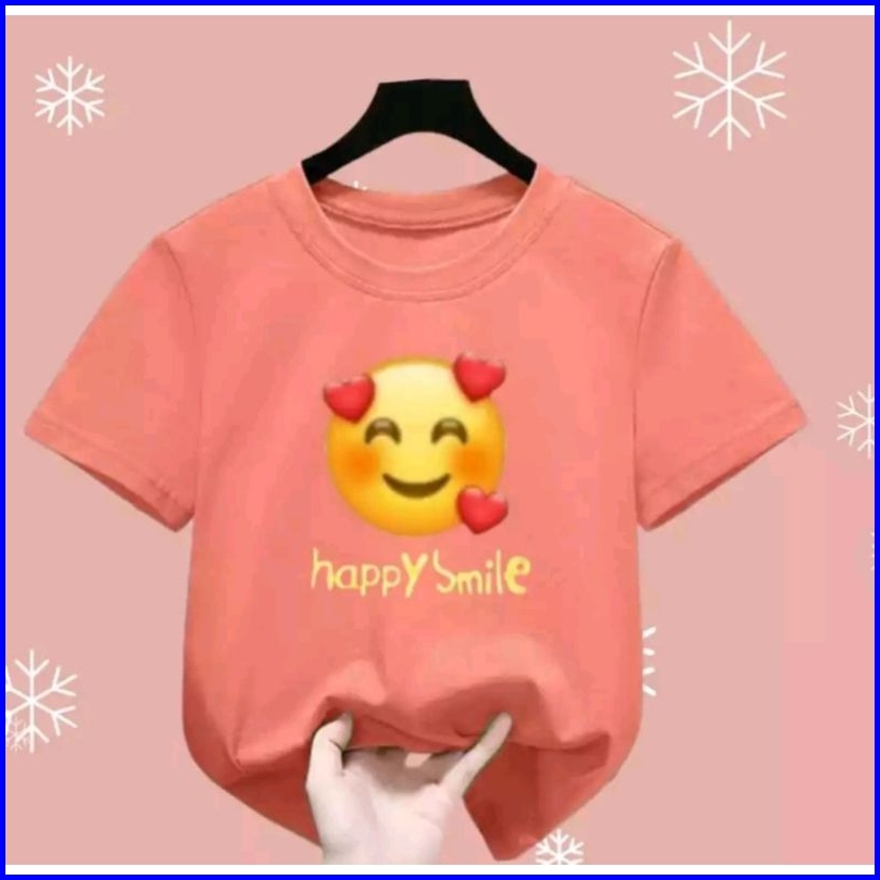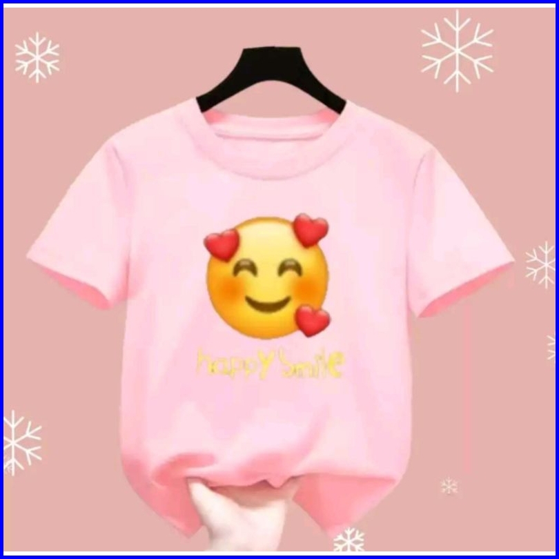 Kaos Oblong Anak Perempuan Motif Happy Smile Usia 2-10 Thn