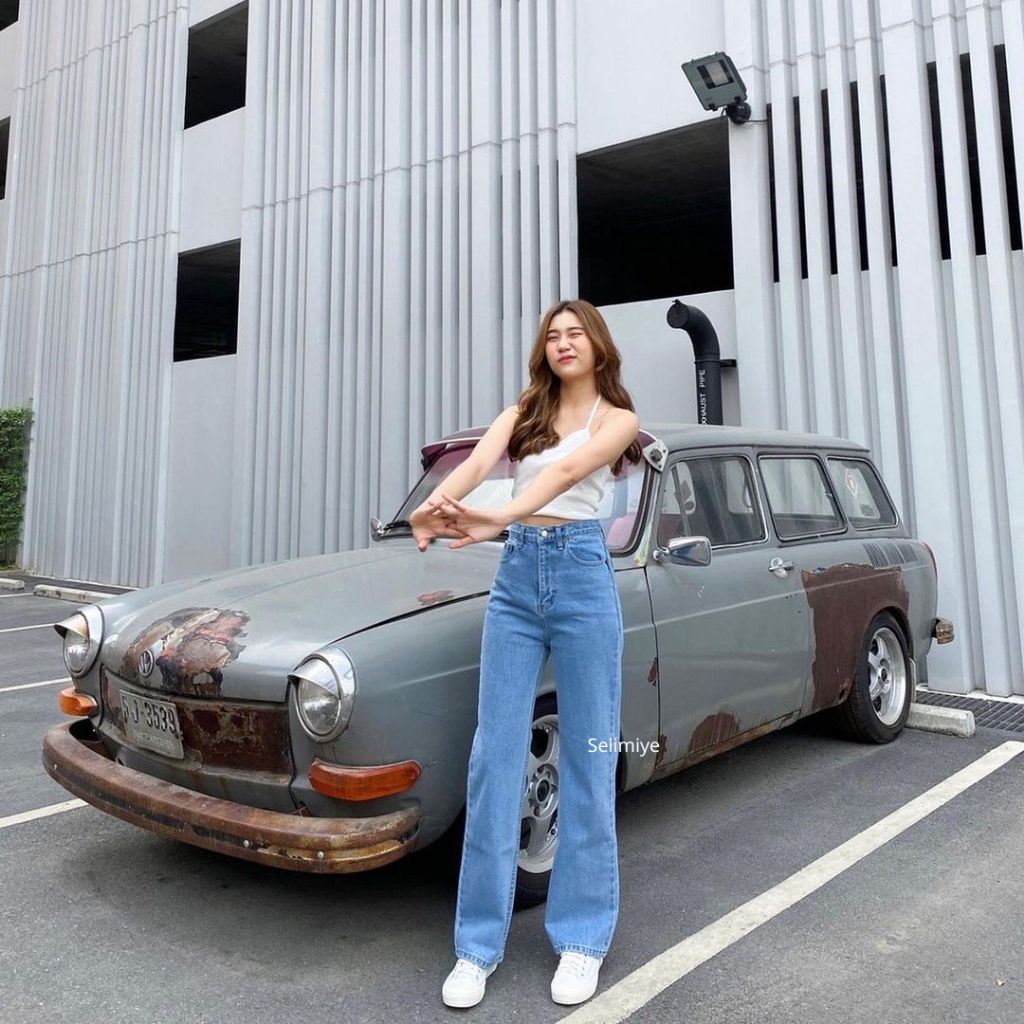 JINSYOU - Celana Jeans Pria Reguler Grey Retro Basic Denim Standar Size 28-38