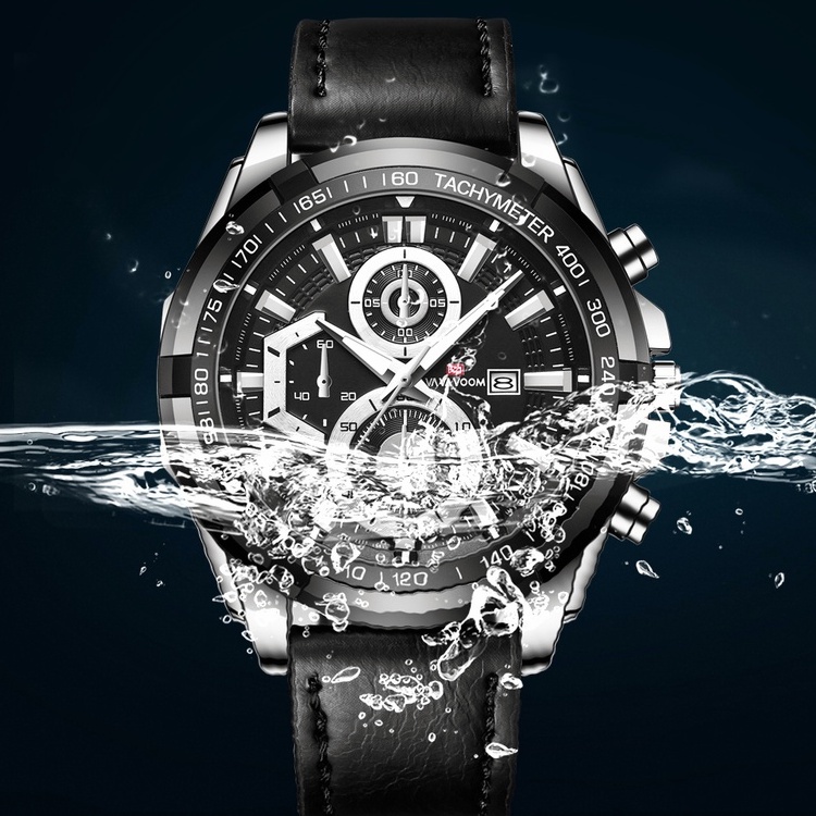 VAVAVOOM 2321 Jam Tangan Pria Olahraga Kulit Stainless Steel Analog Quartz Original Tahan Air Watch + Kotak Gratis