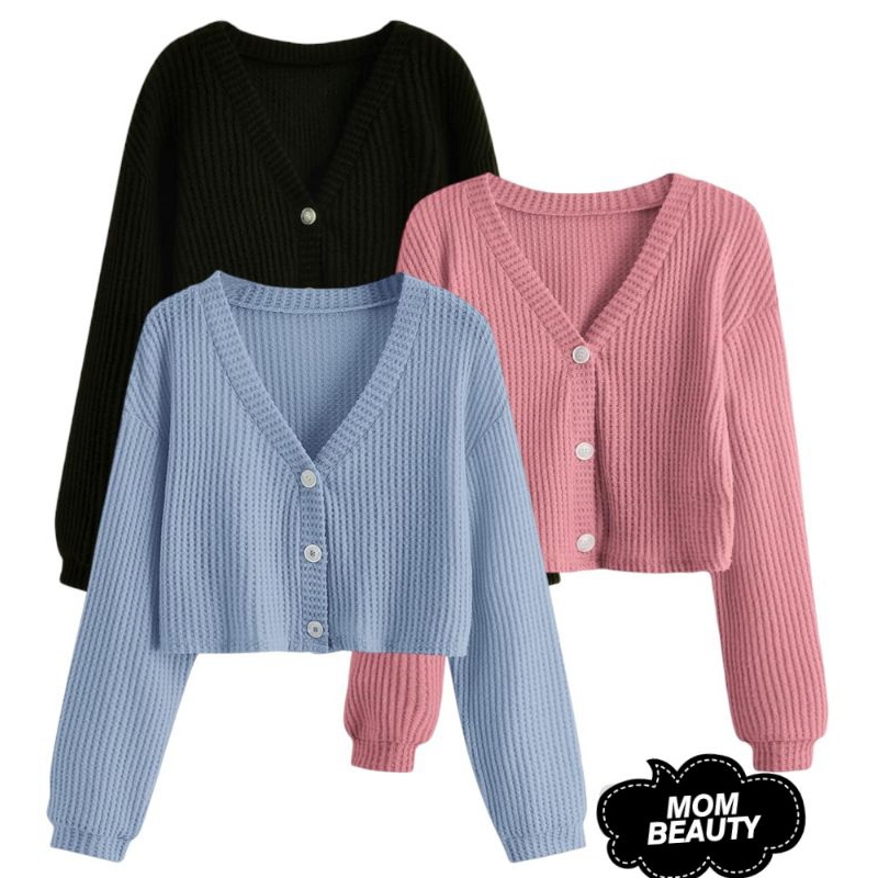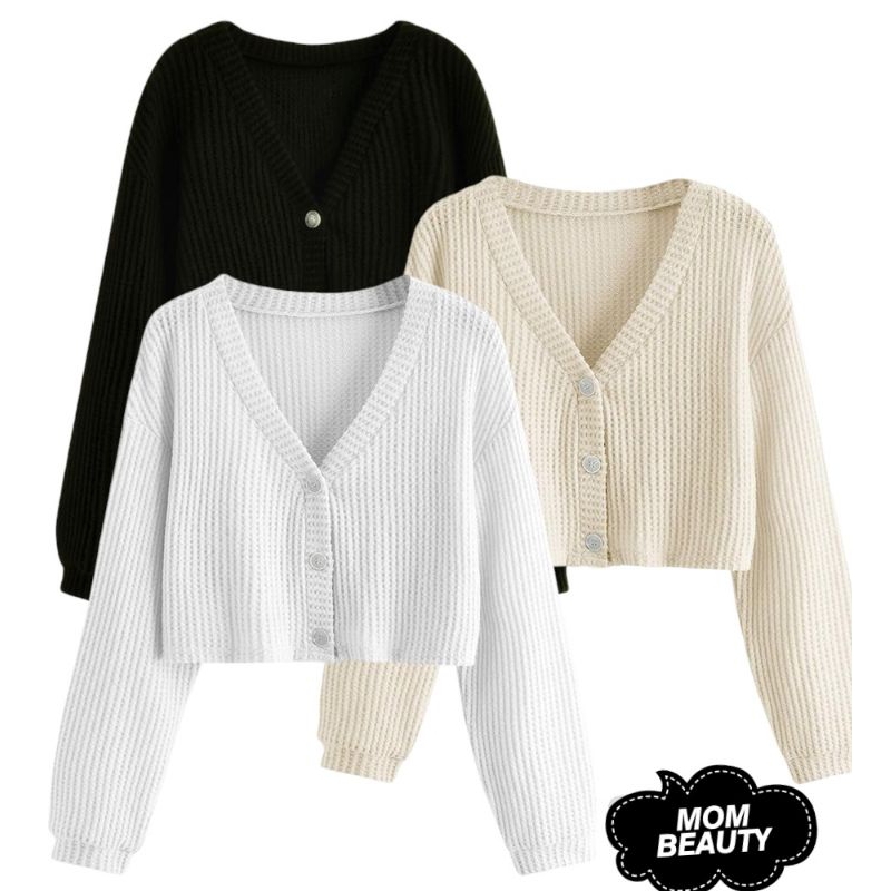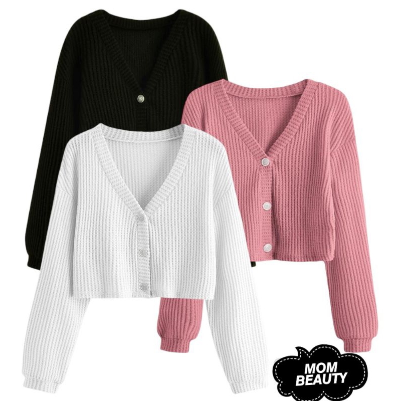 Paket 3 pcs kardigan waffle polos wanita