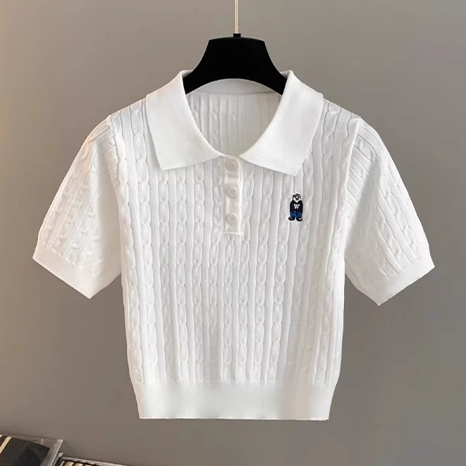 【boll.id】Kaos Rajut Wanita/Kaos Rajut Wanita Lengan Pendek/Polo Rajut Shirt Wanita/Crop Kaos Korean Style/Outfit Cewek Kekinian