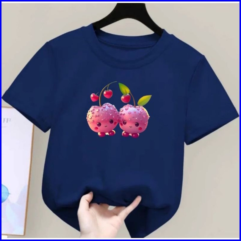 Kaos Anak Viral Motif Buah Cherry Pakaian Anak Unisex Untuk Usia 2-10 Tahun Kd 04