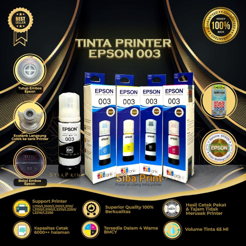 1 SET 4 PCS Tinta Epson 003 Original Tinta Printer L3210 L3216 L3250 L1100 L1200 L3110 L3116 L3150