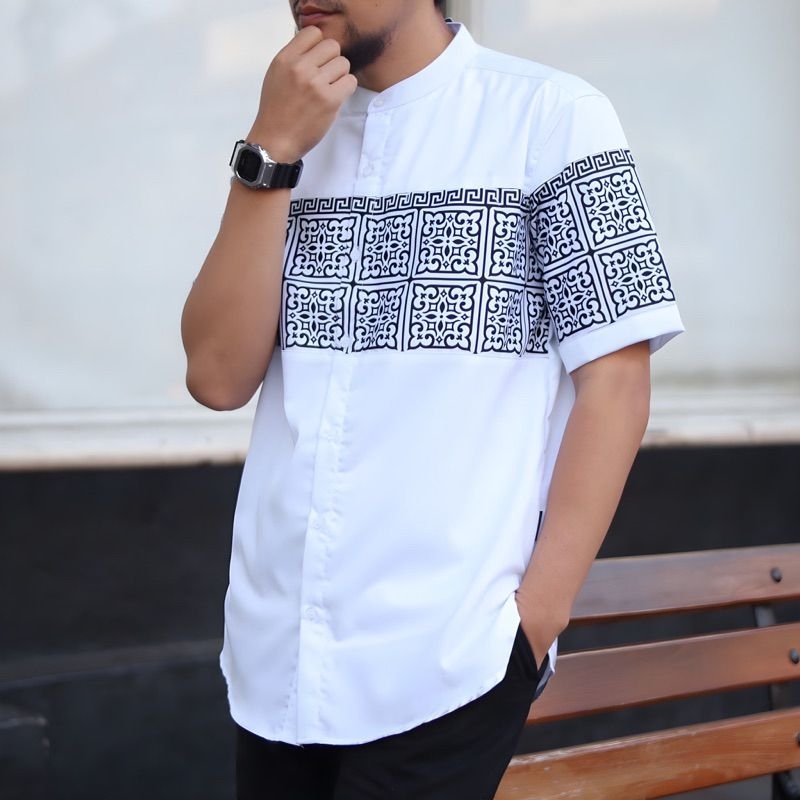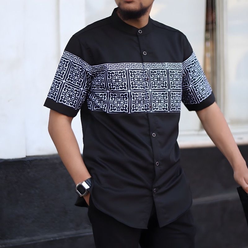Kemeja Lengan Pendek Motif Songket/Kemko Pendek Motif/Kemeja Qurta/Pakaian Muslim