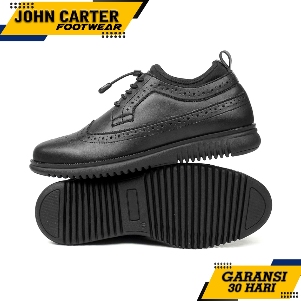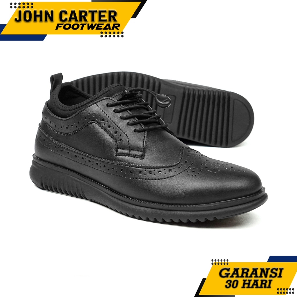 JCF Louis Sepatu Pantofel Formal Longwing Brogue Pria Hitam