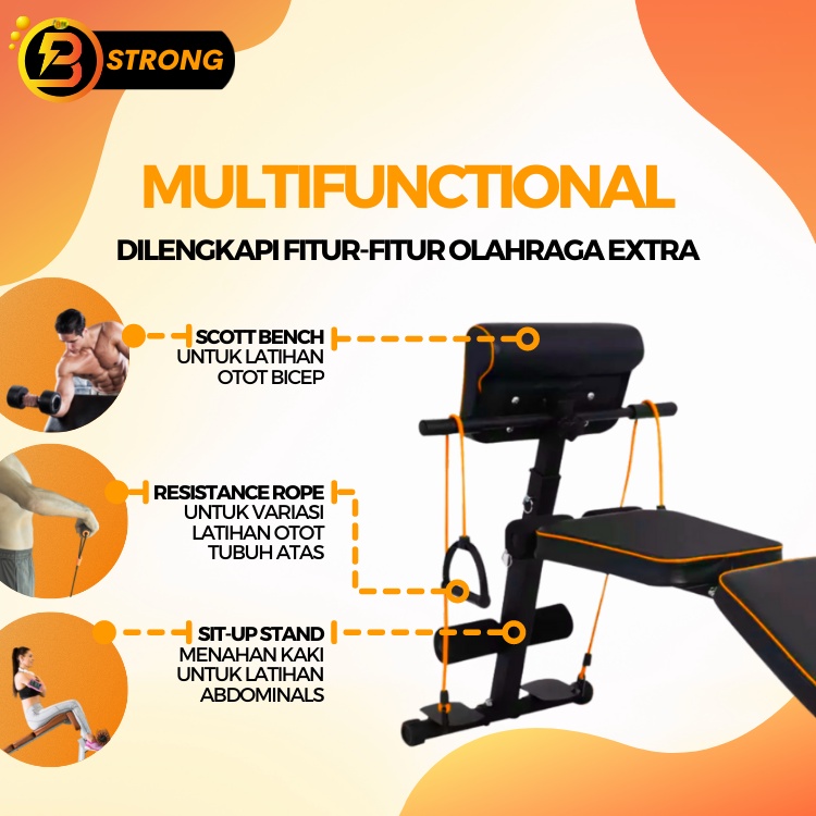 B-STRONG FID Fitness Bench BS-331 - Multifunctional Scott Bench Resistance Rope Sit-Up Stand