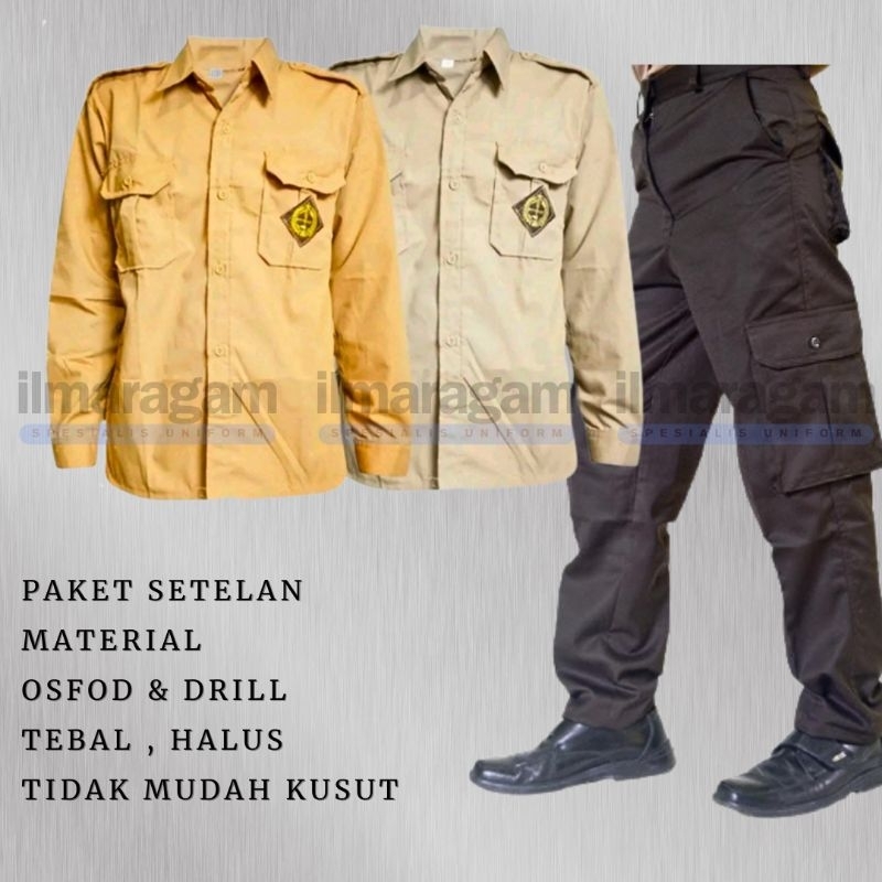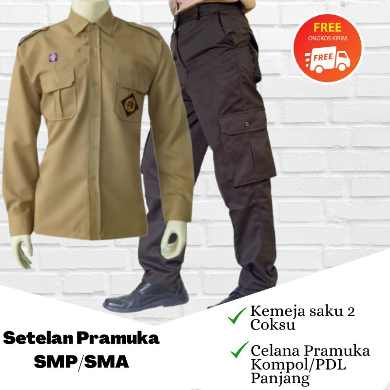 Setelan seragam pramuka SMP seragam sekolah pramuka SMA Baju panjang celana kompol cargo putra putri cewek cowok ukuran besar jumbo setelan lengkap