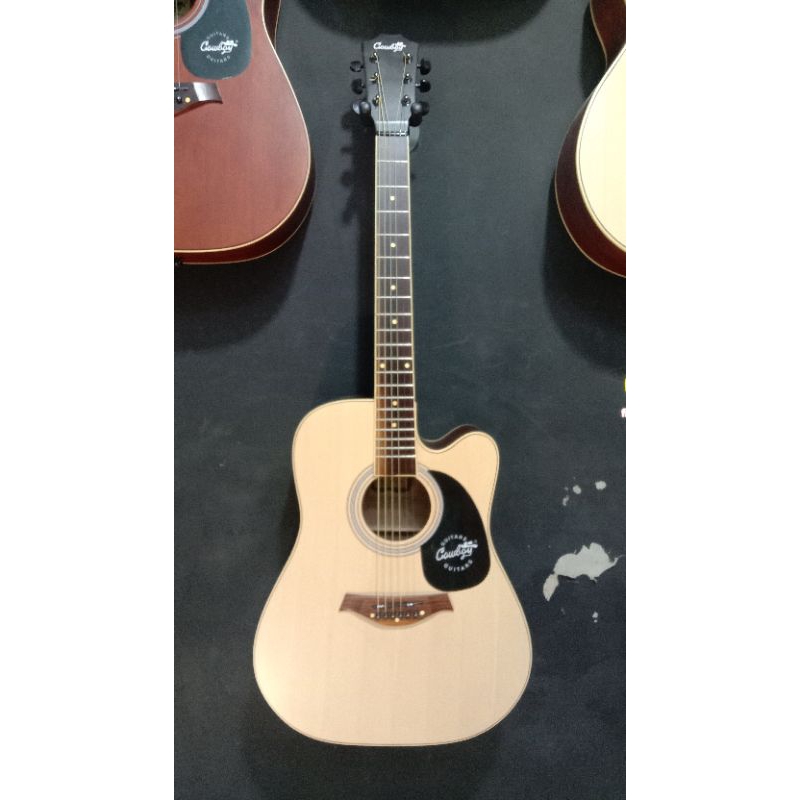 GITAR AKUSTIK / AKUSTIK ELEKTRIK COBOY JUMBO CUSTOM TANAM BESI FREE PEKING KAYU