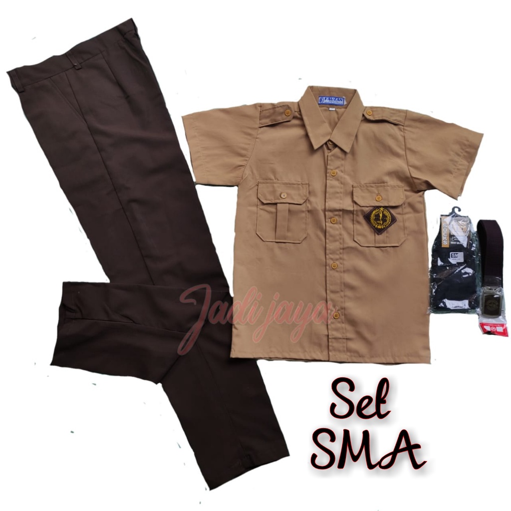 Paket Lengkap Seragam Pramuka SMA Lakii Baju Pendek Celana Panjang
