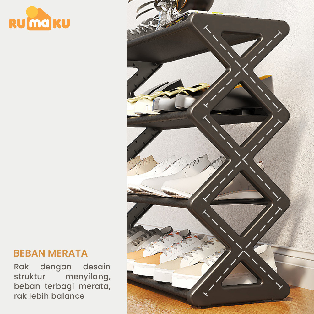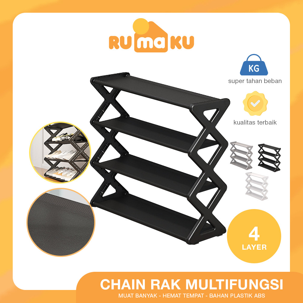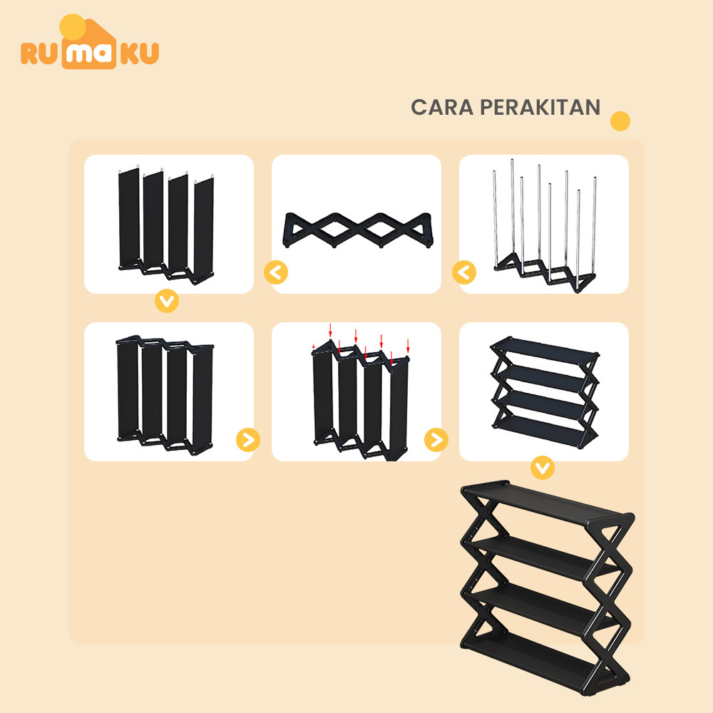 Rak Sepatu Portable 4 Susun Minimalis Stainless Steel Tempat Sepatu dan Sandal Serbaguna
