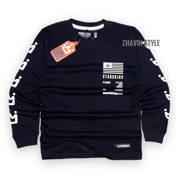 KAOS LENGAN PANJANG ANAK LAKILAKI USIA 112 TAHUN COTTON KATUN HITAM LENGAN PANJANG S
