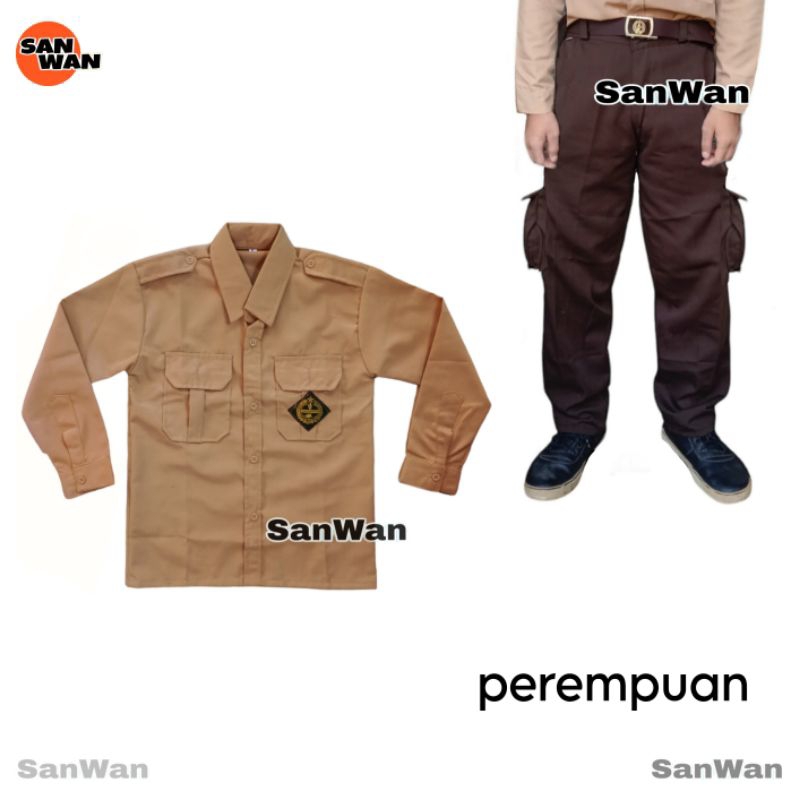 Setelan Seragam Sekolah SD Pramuka PEREMPUAN Baju Panjang Celana PDL CARGO Panjang