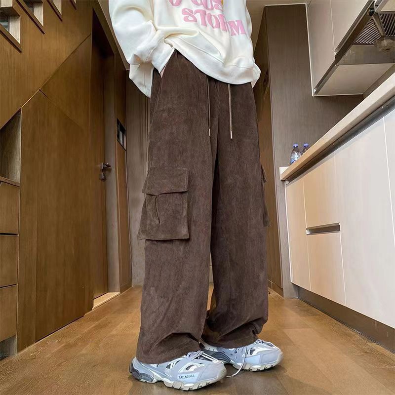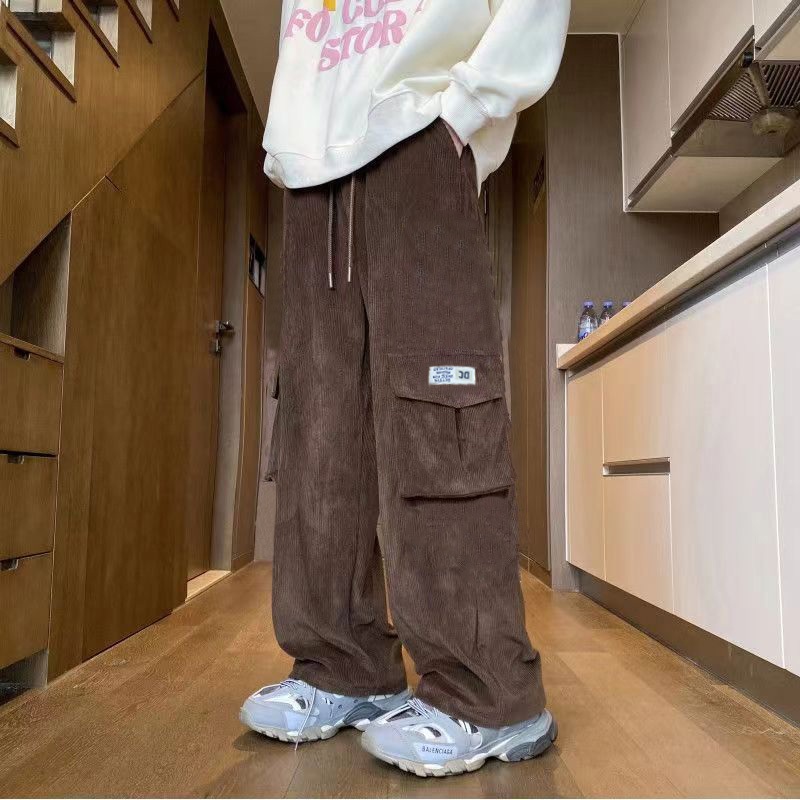KeyBoy celana cargo pria panjang baggy corduroy straight causal stretch pants celana pinggang karet korean style