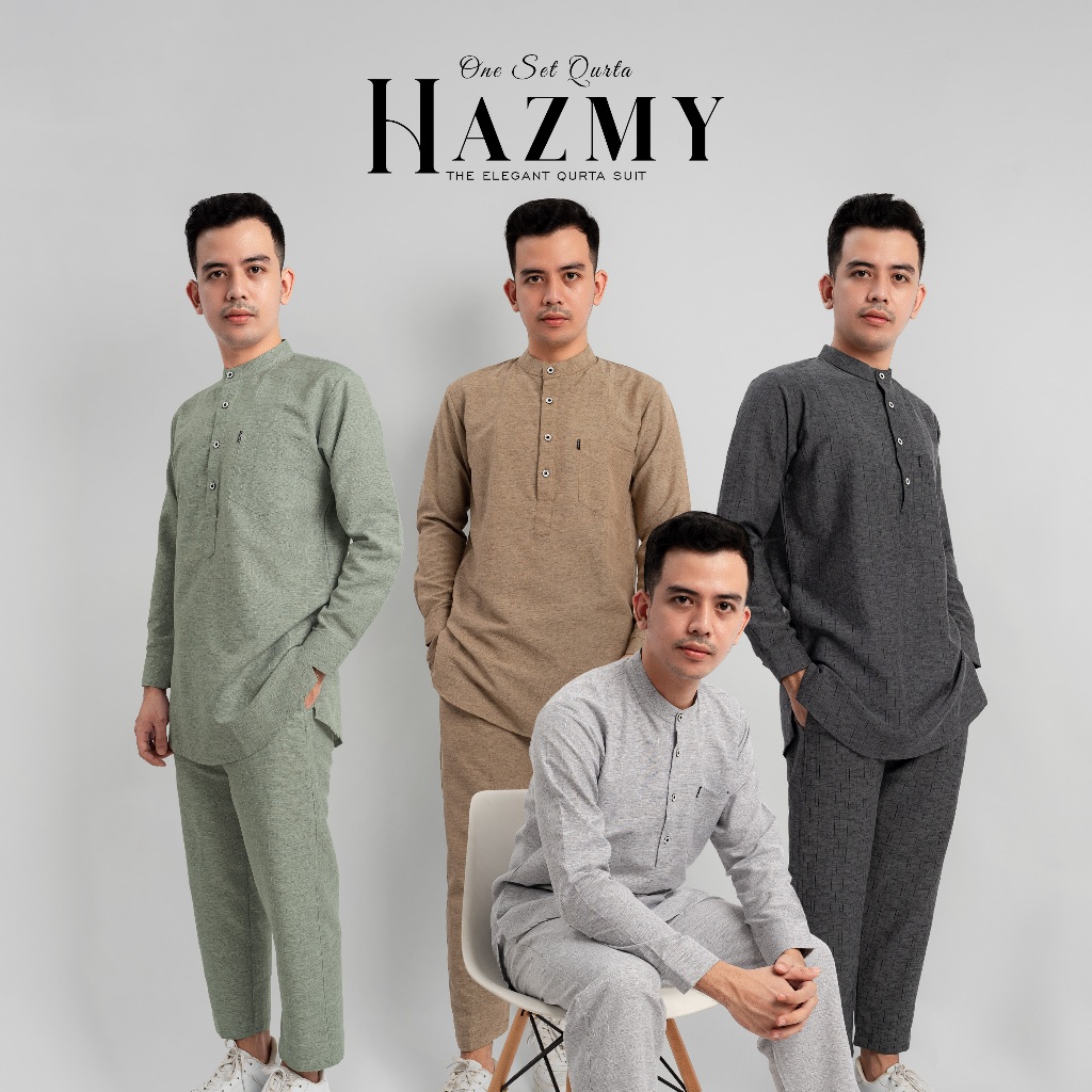 HAZMY Baju Koko Pria Dewasa Kemeja Koko Pria One SET Lengan Panjang Katun Zakat Premium