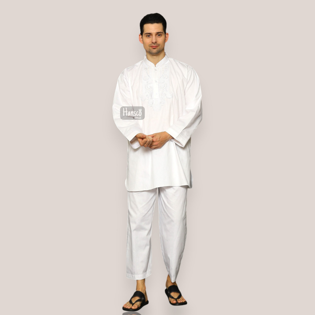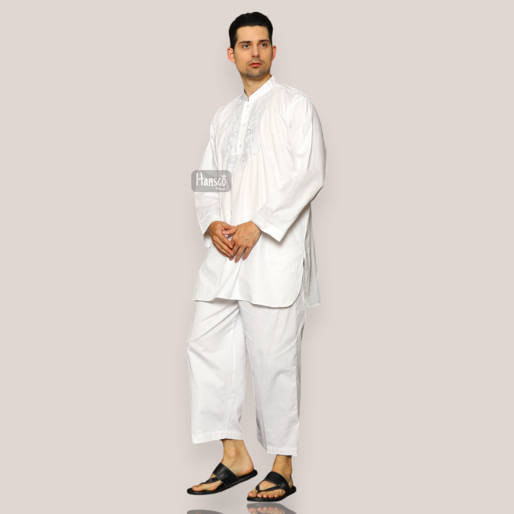 Baju Koko Setelan Pakistan Kurta Putih Katun Twill Baju Koko Pria Dewasa Exclusive