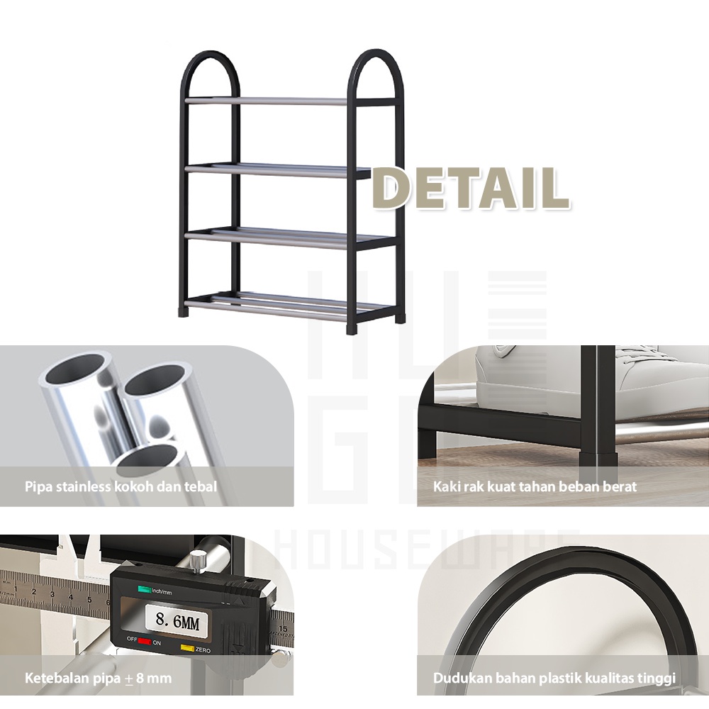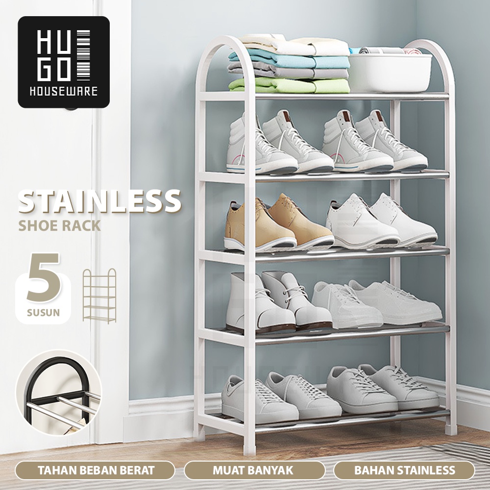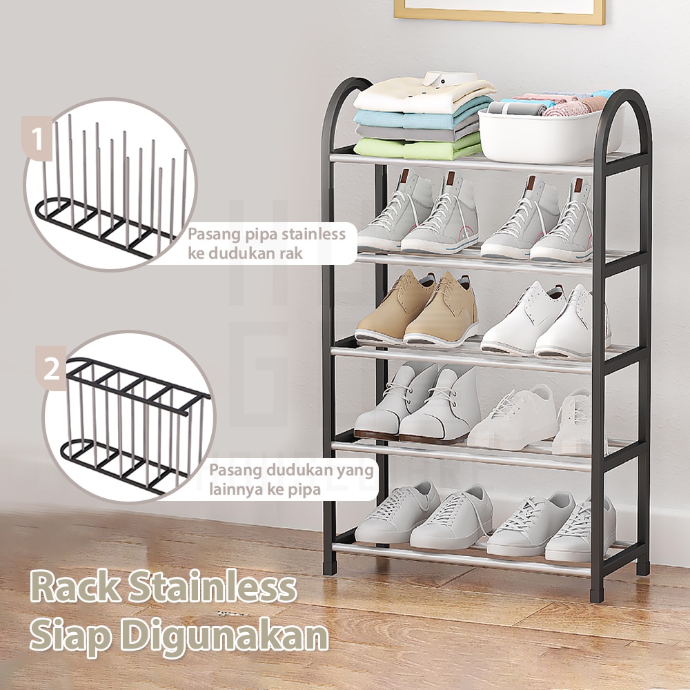 HUGO Rak Sepatu Sandal 4 dan 5 Susun Tempat Sepatu Portable Serbaguna Stainless Steel