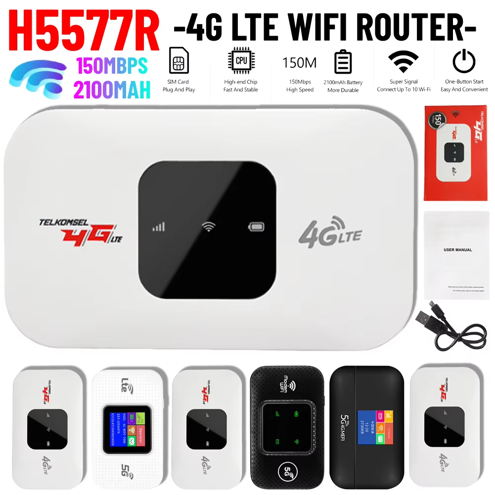 SMARTCOM Wifi Modem MIFI 4G LTE Wireless Pocket WiFi Router Portable 4G LTE 300m Buka Kunci Semua Gunakan Kartu SIM Router WiFi Seluler 3200mAh 150Mbps/300Mbps