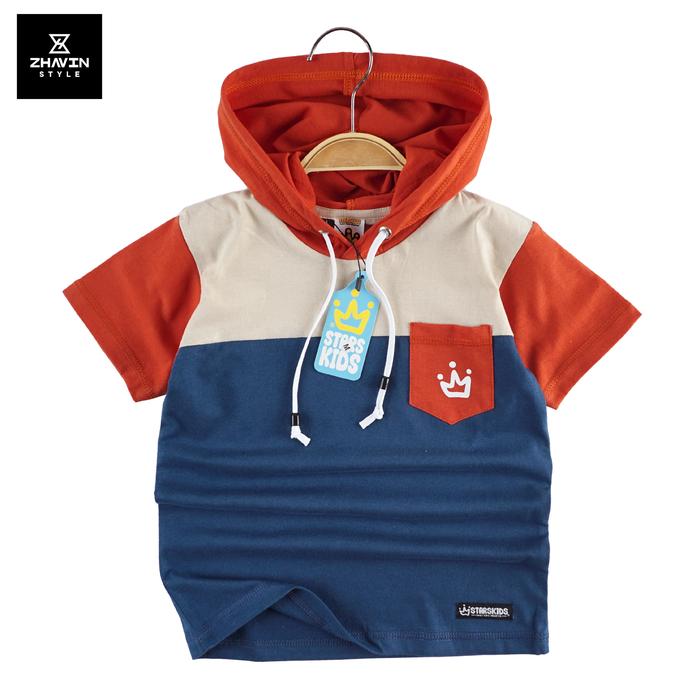 KAOS HOODIE KOMBINASI DISTRO ANAK LAKI LAKI USIA 112 TAHUN BAHAN KATUN COMBET 30S KOMB TERACOTA S