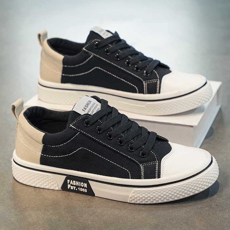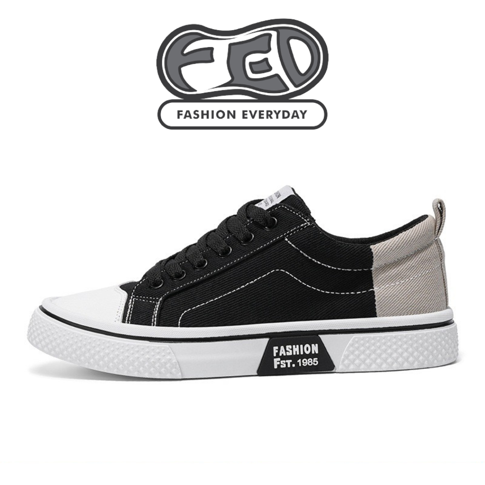 FED Sepatu Kasual Trainers Osaka Hitam Krem Sneakers Pria Wanita Casual Kets Sekolah Kuliah Keren