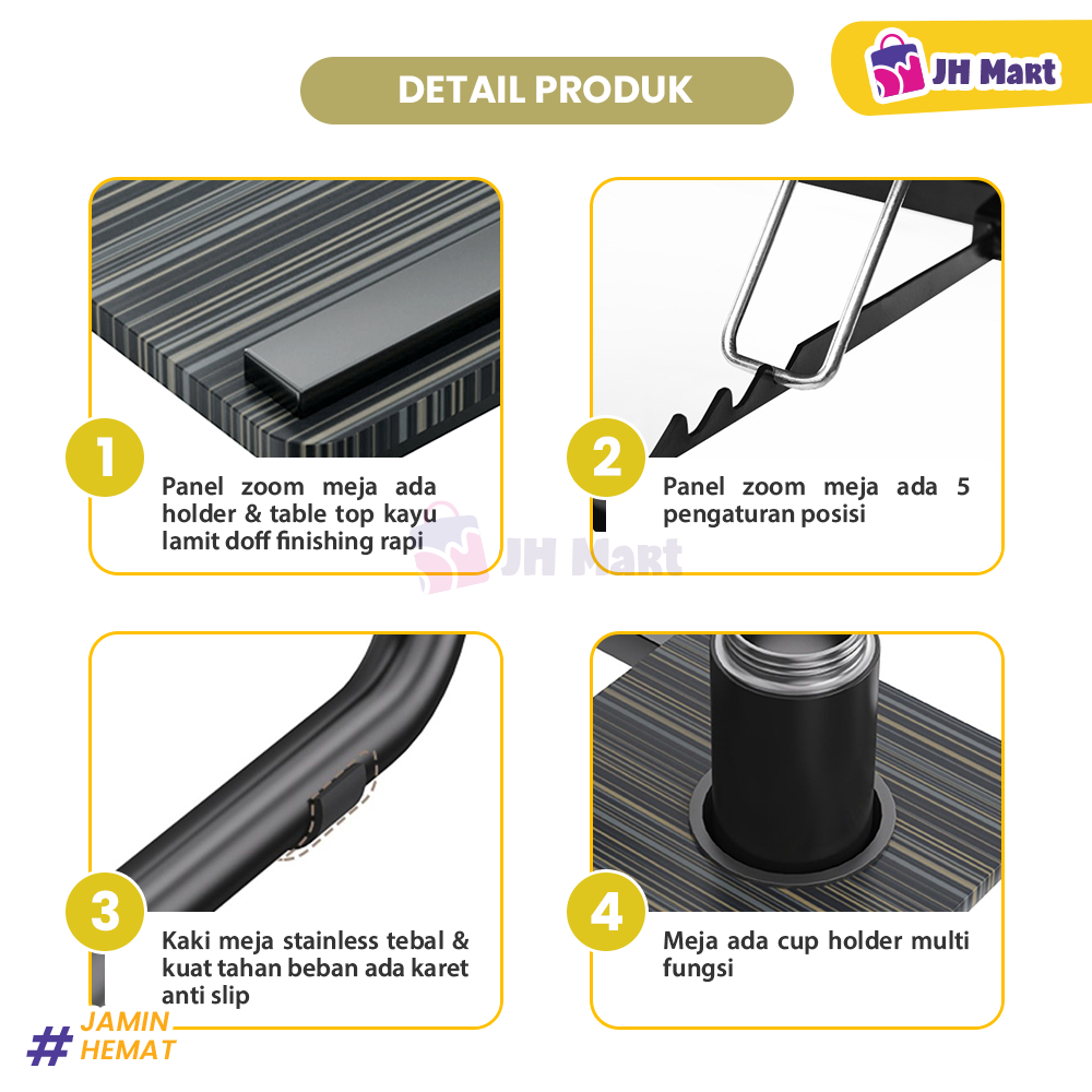 JHM - Meja Laptop Lipat Portable Bahan Kayu HPL Foldable Desk Zoomer Berkualitas